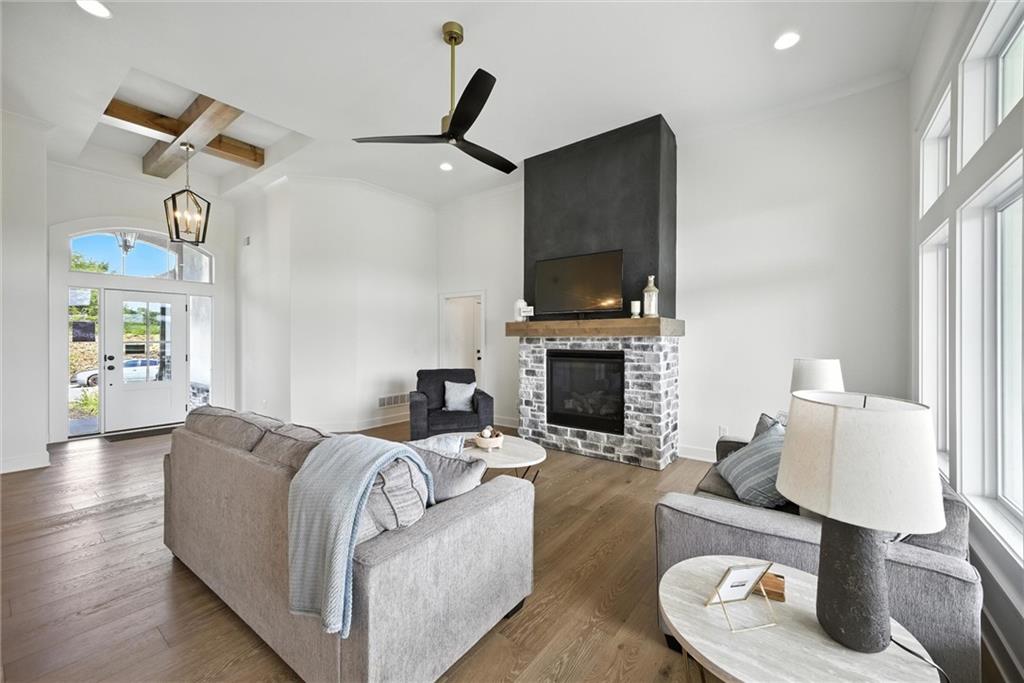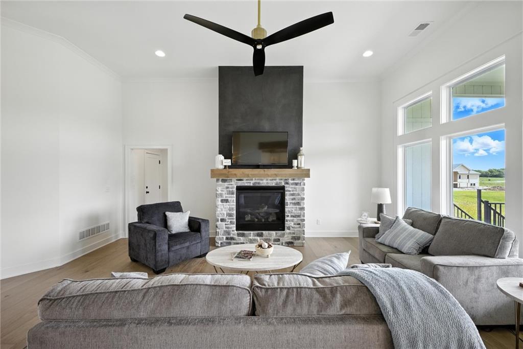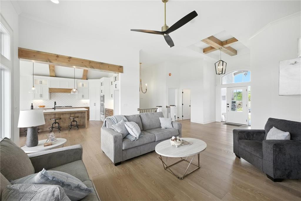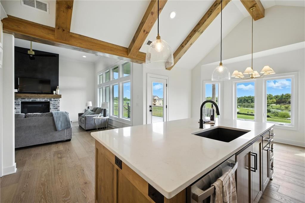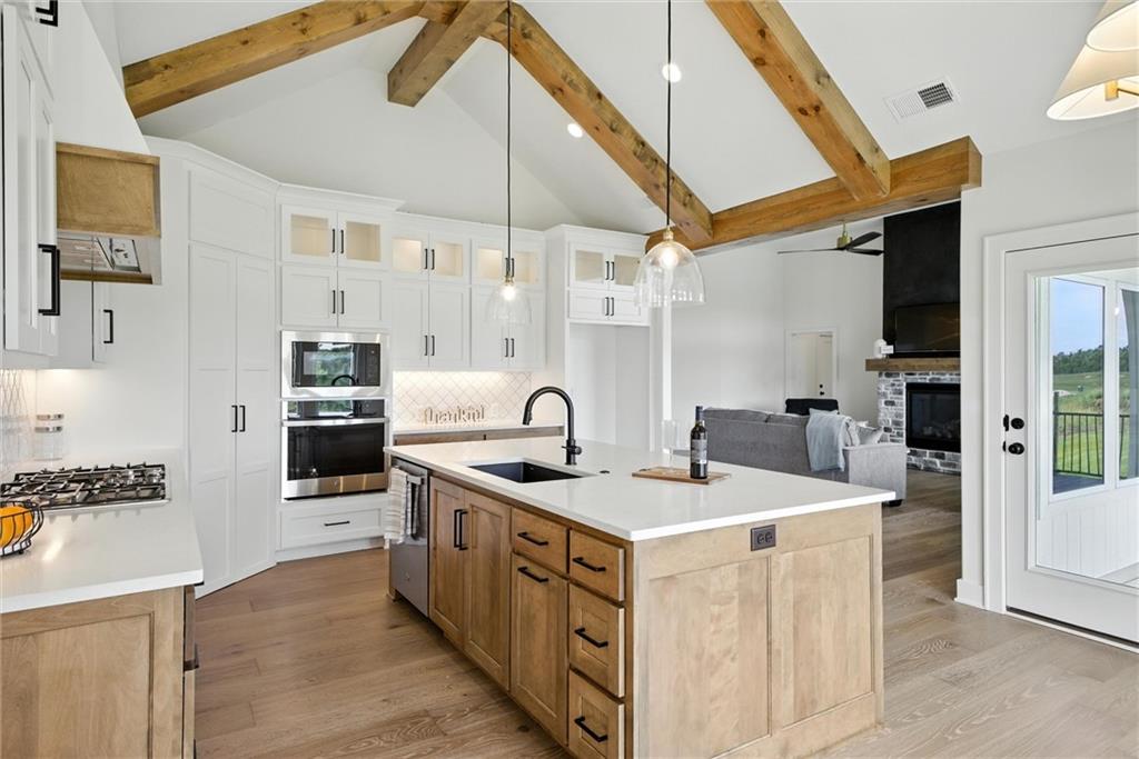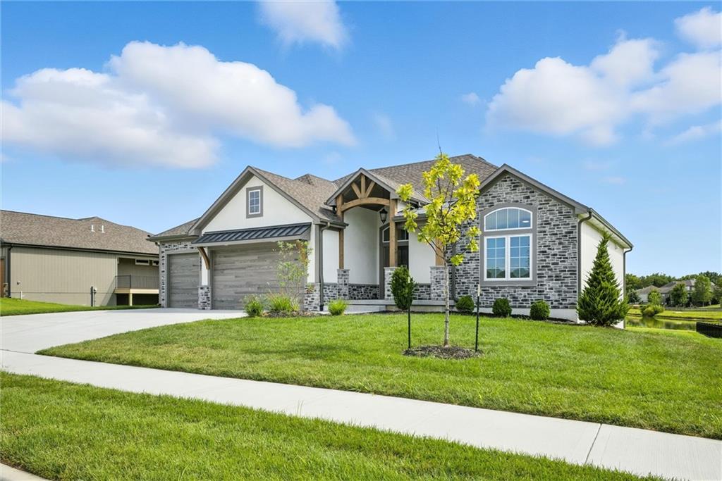 This is The Chateau, where luxury meets comfort. It’s the dream home you have been looking for in The Estates at Knoll Creek, Raymore, MO. This stunning new home by Signature Builders KC, LLC, offers 4 bedrooms, 4 bathrooms, and an array of custom details and designer upgrades. Enjoy peaceful mornings on the covered front porch or large covered deck, which overlooks the community pond. The master suite is a true retreat, featuring a beautiful feature wall and serene backyard views. The spa-like bathroom includes a unique wet area with a walk-in shower and a freestanding soaker tub, along with a spacious master closet connected to the laundry room for added convenience. The finished basement boasts a full bar, an expansive family room, 2 additional bedrooms, 2 bathrooms, and ample storage space. Raymore is known for its welcoming community, excellent schools, and convenient access to shopping, dining, and outdoor activities, making it the perfect place to call home. This property combines modern luxury with small-town charm—schedule your tour today!