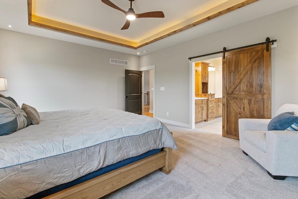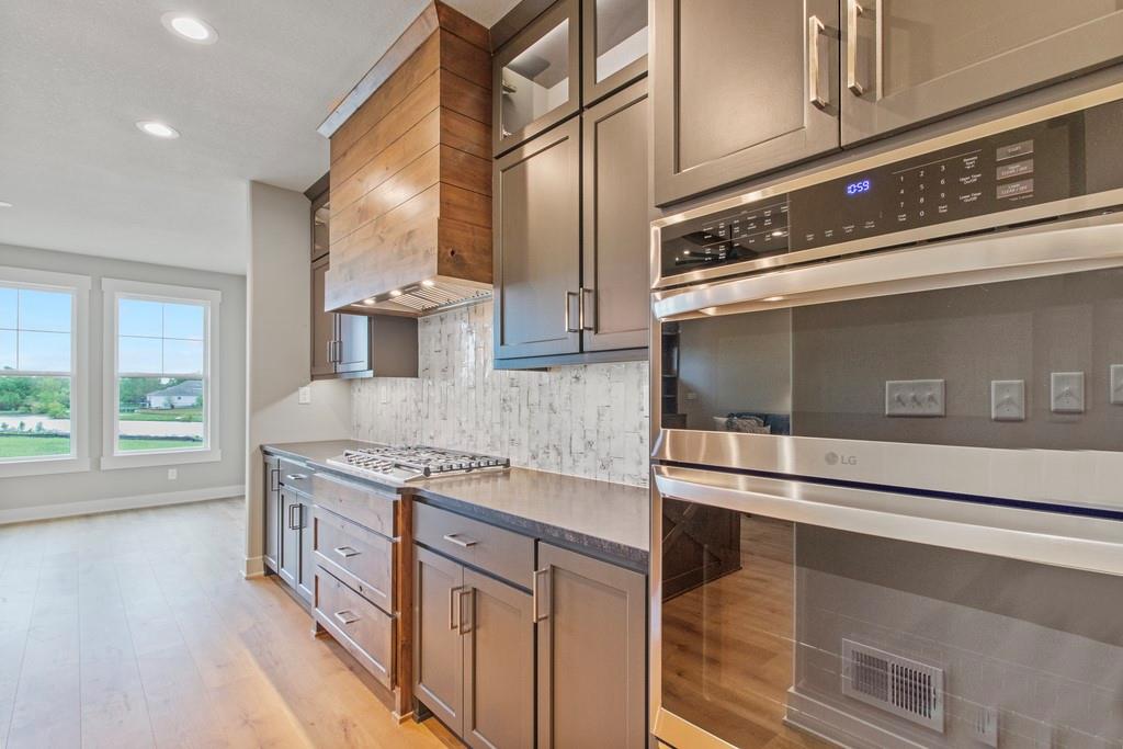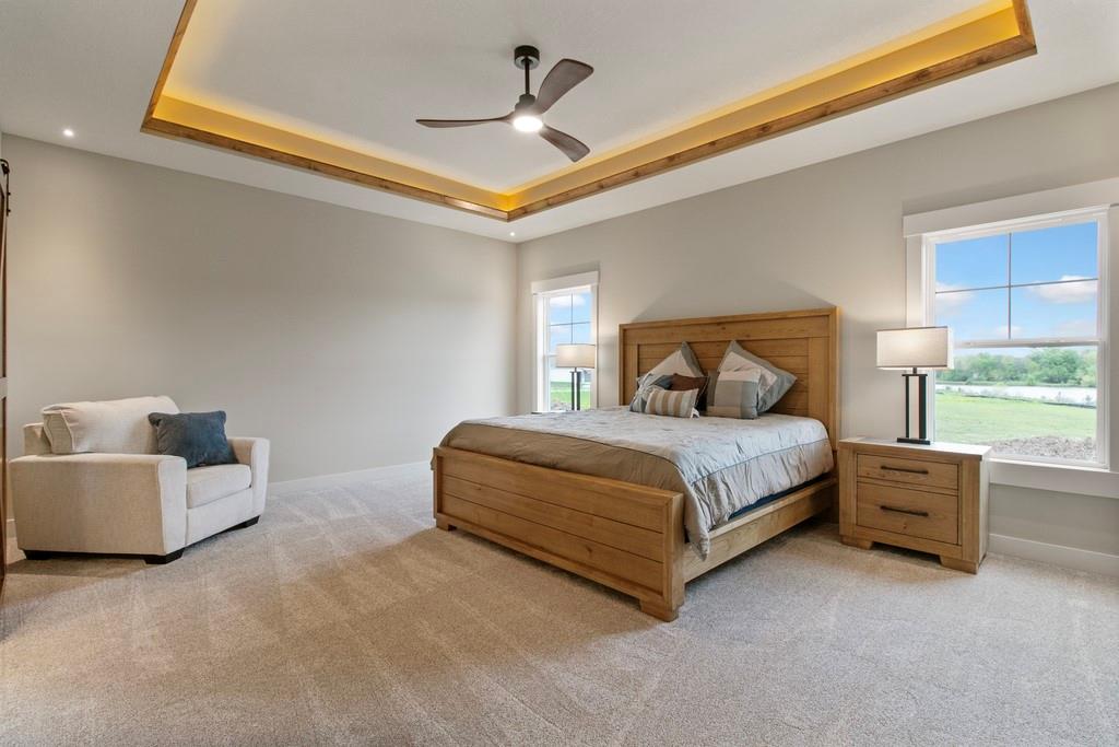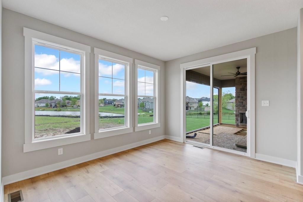 Discover luxury living at The Estates at Knoll Creek in Raymore, MO, with this stunning new construction home by Drumm & Riegert Homes, LLC. Designed for modern living, this custom true ranch offers 5 bedrooms, 4.5 bathrooms, and countless designer upgrades. The main level features an open-concept layout with a chef’s kitchen that boasts a large island, stainless steel appliances including a wall oven and gas cooktop, abundant counter and cabinet space, and a spacious pantry. The adjacent dining area offers spectacular views of the community pond, creating the perfect setting for meals and gatherings. The primary suite includes a spacious bedroom with backyard views, a luxurious bathroom with a soaker tub, tiled shower, double vanity, and direct access to the laundry room. One of the extra bedrooms on the main level walks out to the covered deck. The finished daylight basement features a wet bar, a family room, 2 large bedrooms, 1.5 bathrooms, a storm/safe room, and plenty of storage. The large covered deck features a fireplace and stunning views of the large backyard and community pond, perfect for relaxing or entertaining. Additional highlights include a covered front porch, spray foam insulation, and an extra deep garage that has an access door to the deck. Located in Raymore, a vibrant community with excellent schools, parks, trails, and easy access to Kansas City, this home blends craftsmanship and convenience. Schedule your private tour today!