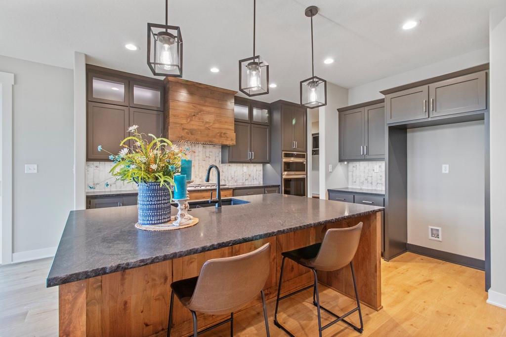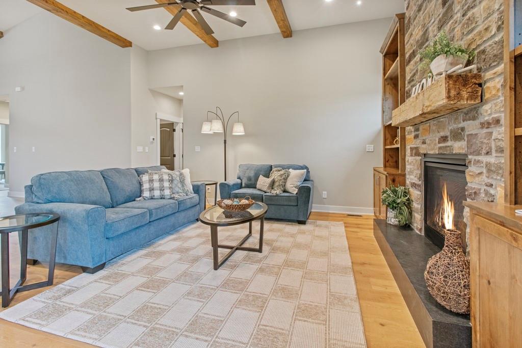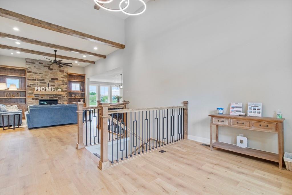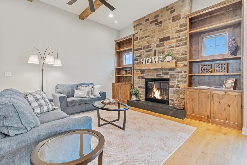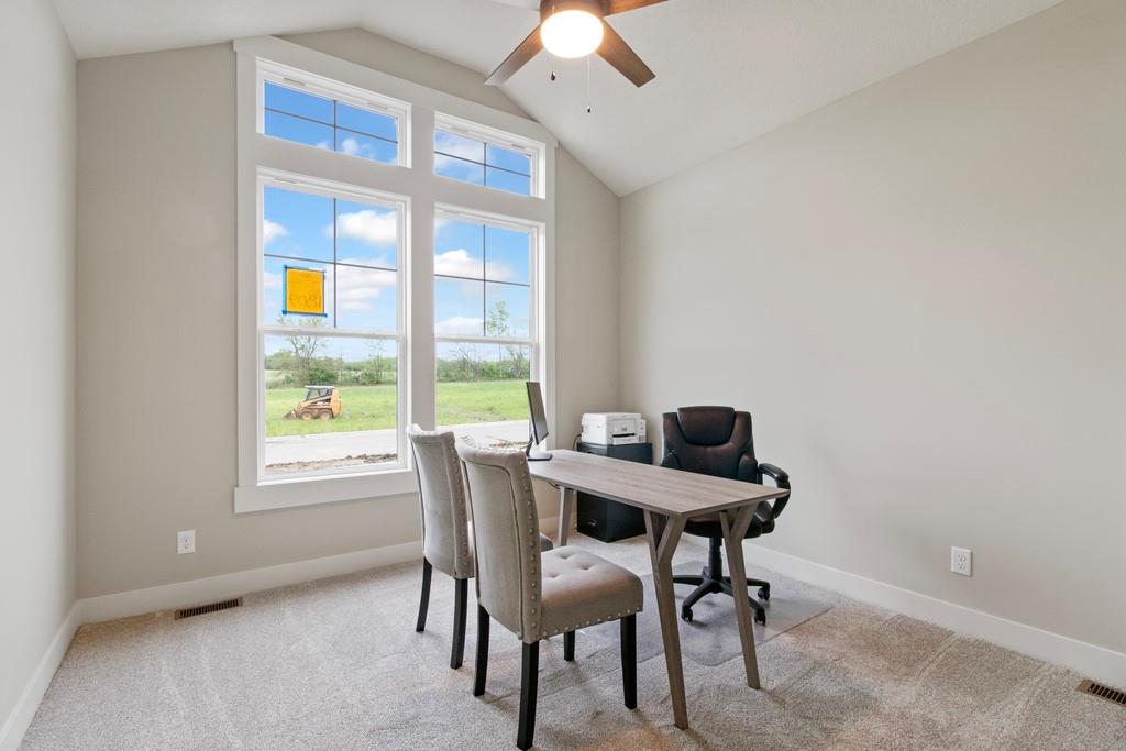 Discover luxury living at The Estates at Knoll Creek in Raymore, MO, with this stunning new construction home by Drumm & Riegert Homes, LLC. Designed for modern living, this custom true ranch offers 5 bedrooms, 4.5 bathrooms, and countless designer upgrades. The main level features an open-concept layout with a chef’s kitchen that boasts a large island, stainless steel appliances including a wall oven and gas cooktop, abundant counter and cabinet space, and a spacious pantry. The adjacent dining area offers spectacular views of the community pond, creating the perfect setting for meals and gatherings. The primary suite includes a spacious bedroom with backyard views, a luxurious bathroom with a soaker tub, tiled shower, double vanity, and direct access to the laundry room. One of the extra bedrooms on the main level walks out to the covered deck. The finished daylight basement features a wet bar, a family room, 2 large bedrooms, 1.5 bathrooms, a storm/safe room, and plenty of storage. The large covered deck features a fireplace and stunning views of the large backyard and community pond, perfect for relaxing or entertaining. Additional highlights include a covered front porch, spray foam insulation, and an extra deep garage that has an access door to the deck. Located in Raymore, a vibrant community with excellent schools, parks, trails, and easy access to Kansas City, this home blends craftsmanship and convenience. Schedule your private tour today!